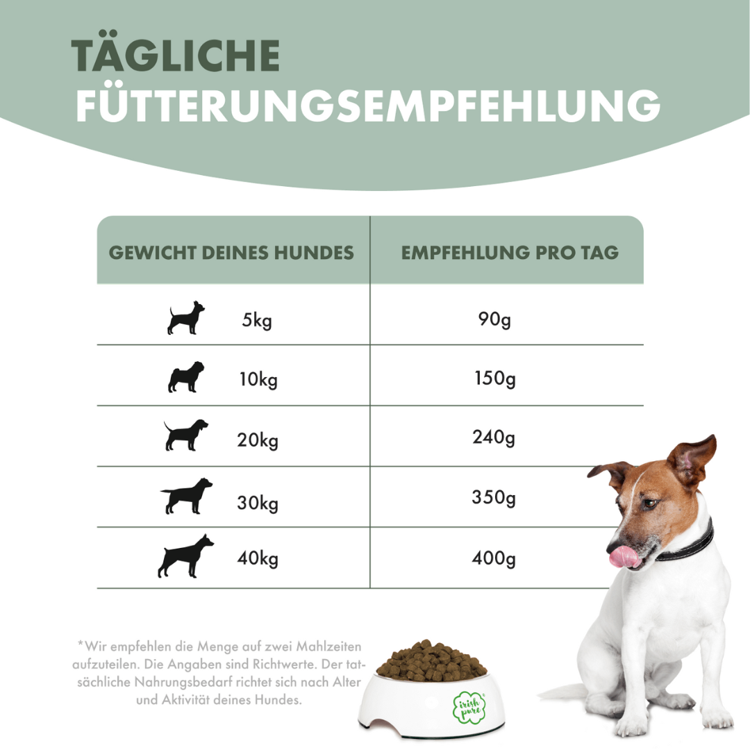 Dann wirf einen Blick in unseren großen Ratgeber „Trockenfutter Hund“ – hier findest du alles Wissenswerte zur richtigen Ernährung deines Hundes mit Trockenfutter.