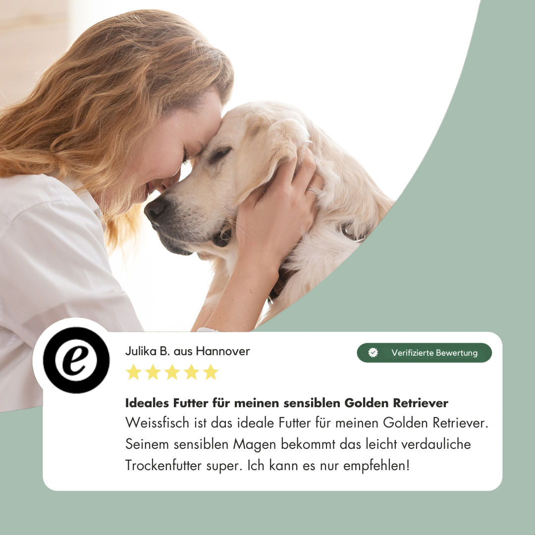Selbstverständlich ist auch die Rezeptur unserer Weißfischsorte 100 % getreidefrei – ohne Weizen, Mais oder Soja. Wir verzichten bewusst auf billige Füllstoffe und künstliche Zusatzstoffe, um eine möglichst naturnahe und verträgliche Ernährung zu ermöglichen. Das macht unser Trockenfutter besonders geeignet für Hunde mit Allergien oder sensibler Verdauung.