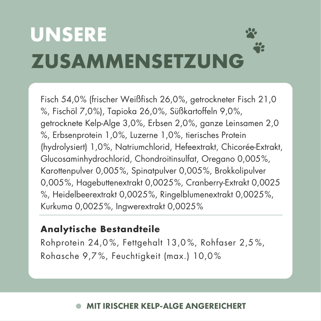 Irischer Weißfisch mit Gemüse & Kelp-Alge – Hypoallergenes Trockenfutter für sensible Hunde